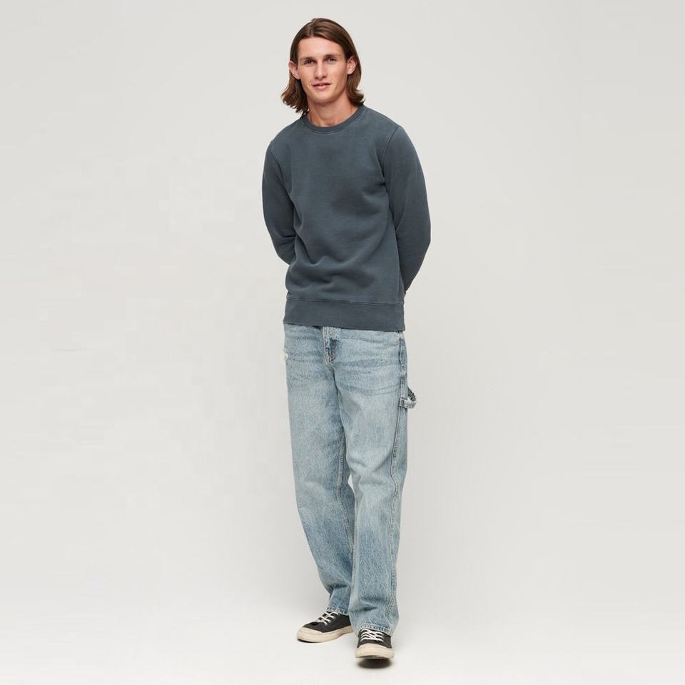 เสื้อสเวตเตอร์คอตตอนสำหรับผู้ชายเสื้อสเวตเชิ้ตคอกลมพิมพ์โลโก้วินเทจซักได้ตามต้องการ