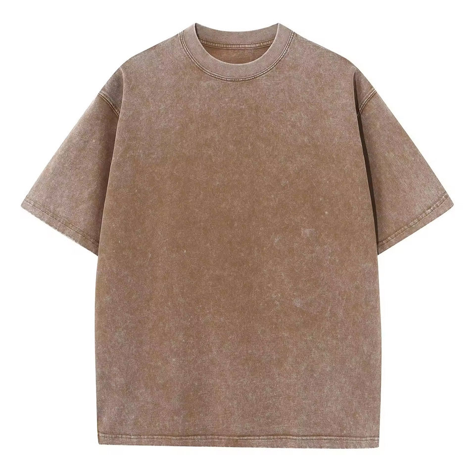 เสื้อยืดโอเวอร์ไซส์ผู้ชายแบบย้อมสีเอซิด รับสกรีนโลโก้ ผ้าคอตตอนถัก 220gsm คอกลม ระบายอากาศดี สไตล์สตรีทแวร์ ขายส่งจำนวนมาก