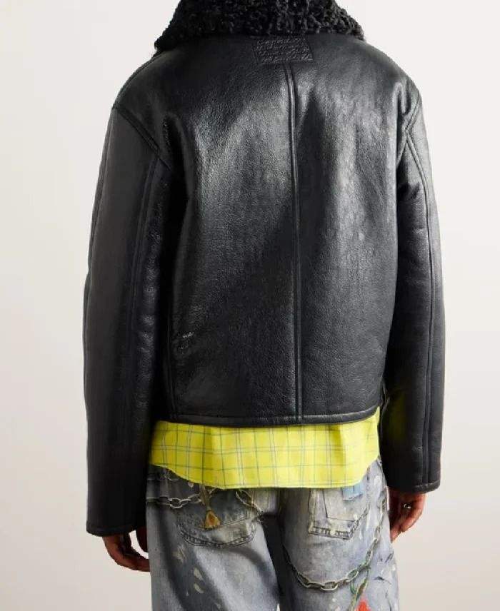 เสื้อแจ็กเก็ตหนังแตกแต่งขนแกะสำหรับสตูดิโอรักษาสิว