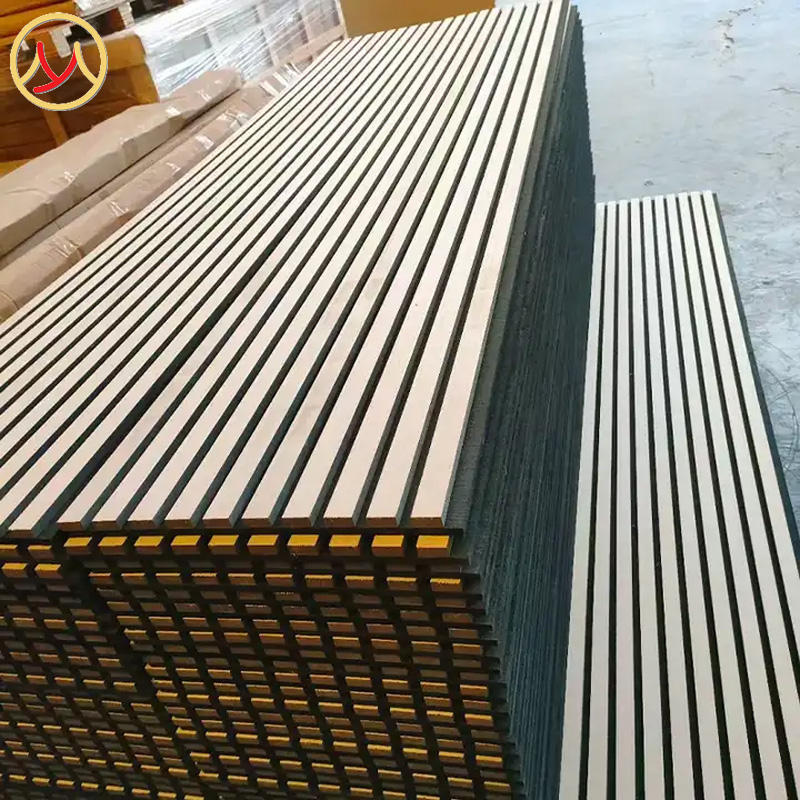 แผ่นอะคูสติกไม้ ติดบนแผ่นสักหลาด แผ่นผนังอะคูสติกไม้ สำหรับการตกแต่งภายในเพื่อการกันเสียง