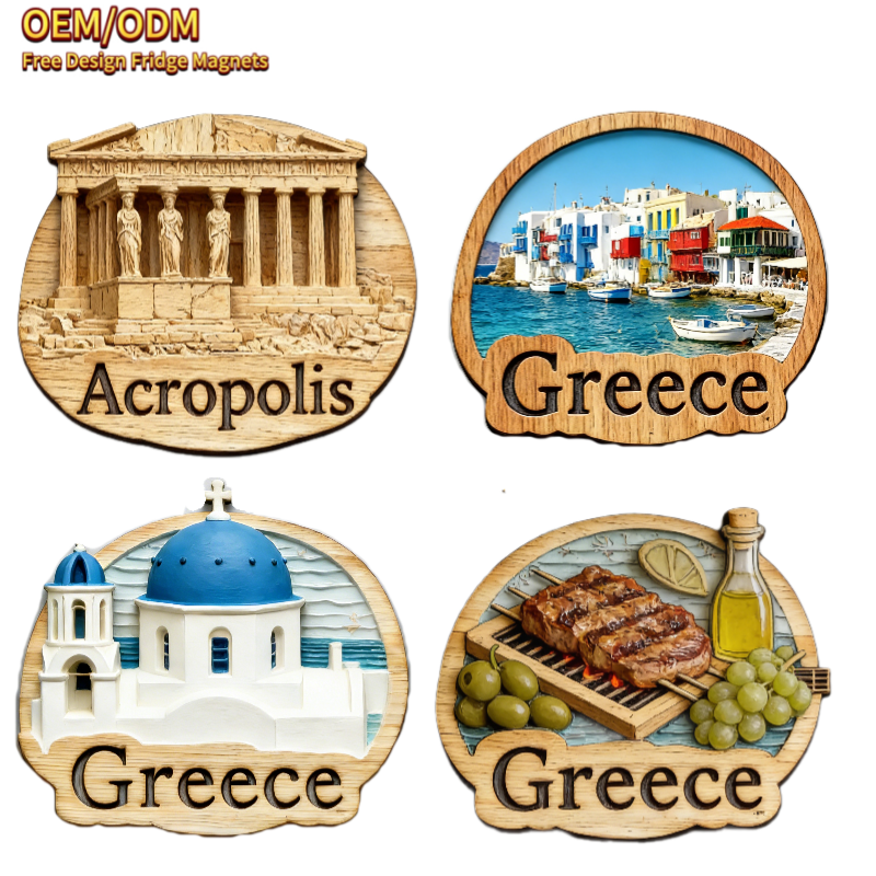 แม่เหล็กติดตู้เย็นลายอาร์ตเดโคจากอะโครโพลิสและซานโตรินี ของที่ระลึกการเดินทางจากกรีซ เป็นมิตรกับสิ่งแวดล้อม