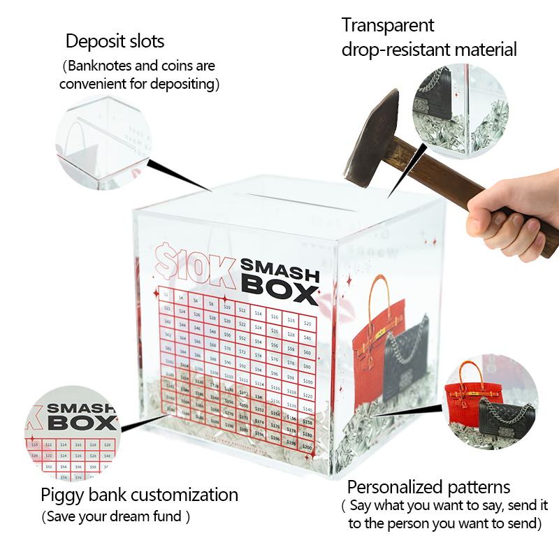 กล่องอะคริลิค10K กล่องใส่เหรียญกระปุกออมสินสำหรับเด็กกล่องเก็บของพร้อมลวดลายดิจิทัลกล่องเก็บเงิน