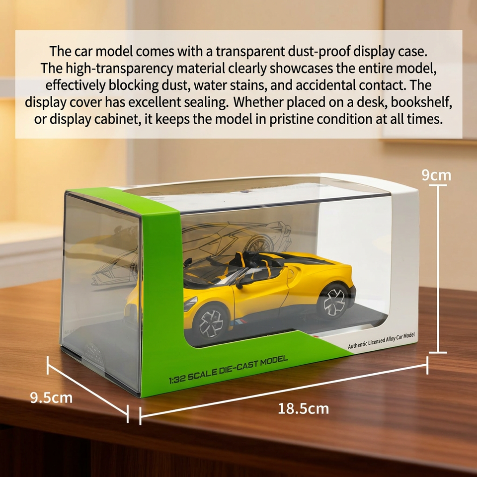 รถโมเดลอะคริลิค ขนาด 1/32 แบบจำลองรถโรดสเตอร์ ประตูเปิดได้ W16 Mistral ล้ออัลลอยด์แบบดึงถอยหลัง ขยับได้ รถซูเปอร์คาร์ สำหรับเด็กผู้ชาย