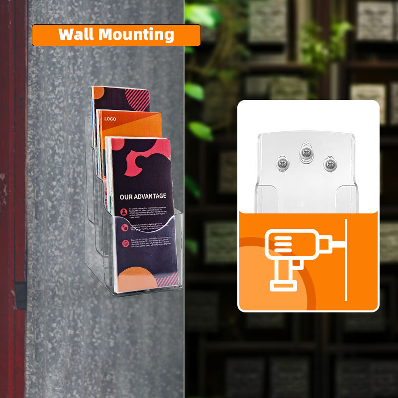 ที่วางโบรชัวร์อะคริลิค, แท่นโชว์โบรชัวร์ใสพร้อมที่ใส่นามบัตรอะคริลิค, แท่นโชว์ใบปลิวพลาสติกสำหรับนิตยสาร