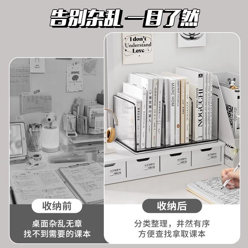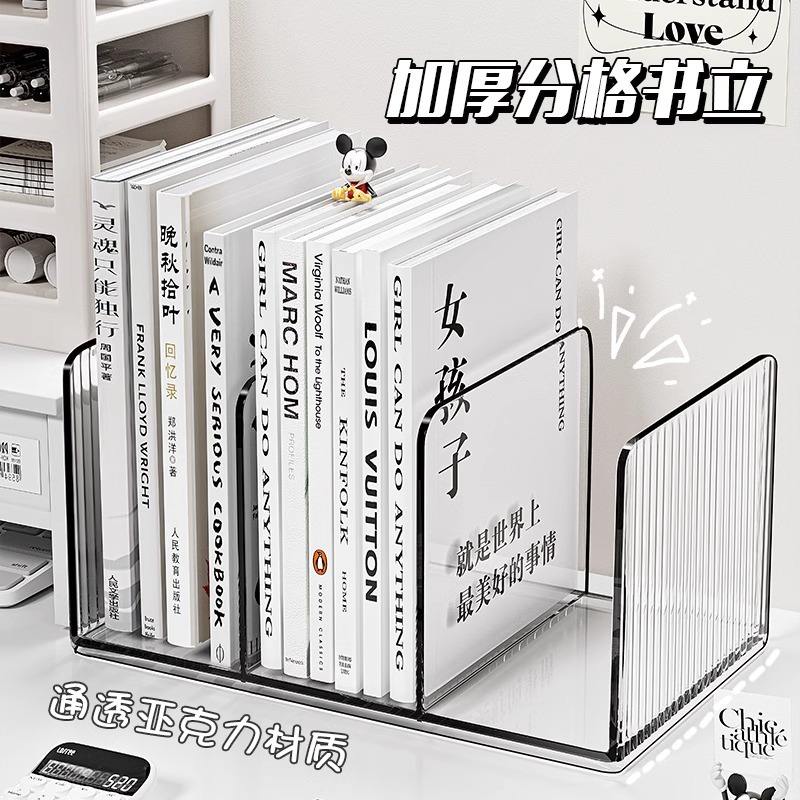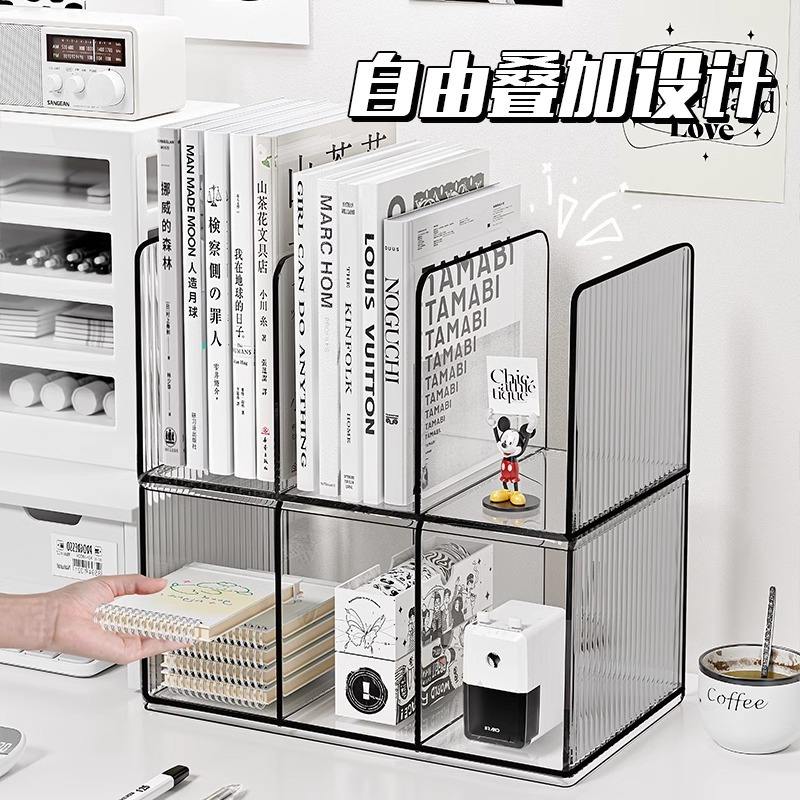 Acrylic Desktop Bookshelf Organizer Rectangle Minimalist Office Storage Three Square Pen Holder File Stand 26x15x12.3cm