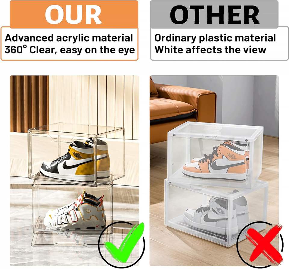 กล่องเก็บรองเท้าอะคริลิคแบบพับได้ เปิดด้านข้าง แม่เหล็กดูด แบบกำหนดเอง ขนาดใหญ่ ใส สำหรับจัดเก็บรองเท้าผ้าใบ กล่องโชว์รองเท้าพลาสติก
