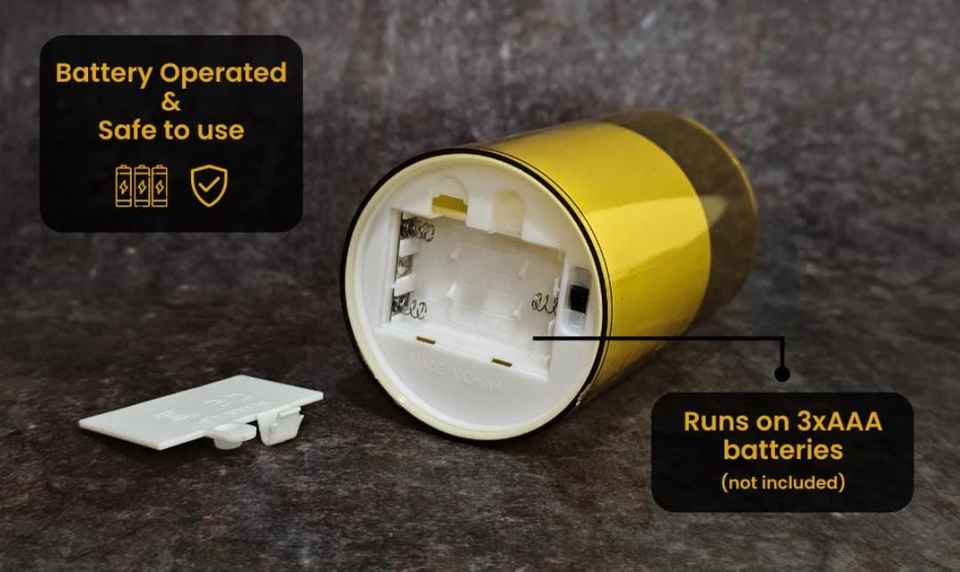ทำงานโดยใช้แบตเตอรี่ AAA จำนวน 3 ก้อนแหล่งพลังงาน