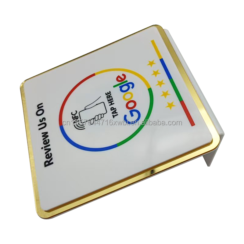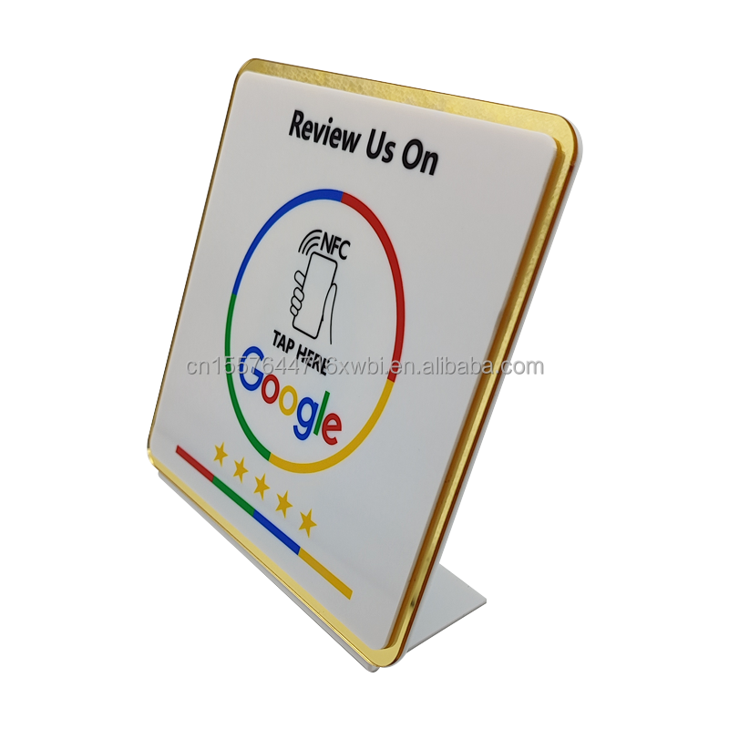 อะคริลิค Google Review NFC ขาตั้งบนโต๊ะ13.56MHz พิมพ์โลโก้แบบกำหนดเอง Google Review NFC PVC การ์ดรีวิวห้าดาว