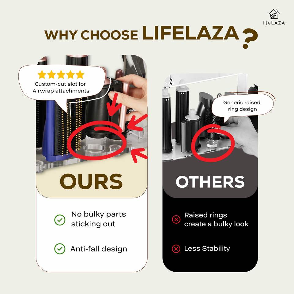 ที่วางอะคริลิคแบบทันสมัยและที่จัดเก็บอุปกรณ์เสริม Airwrap ชั้นวางจัดระเบียบบนเคาน์เตอร์ที่ยั่งยืน