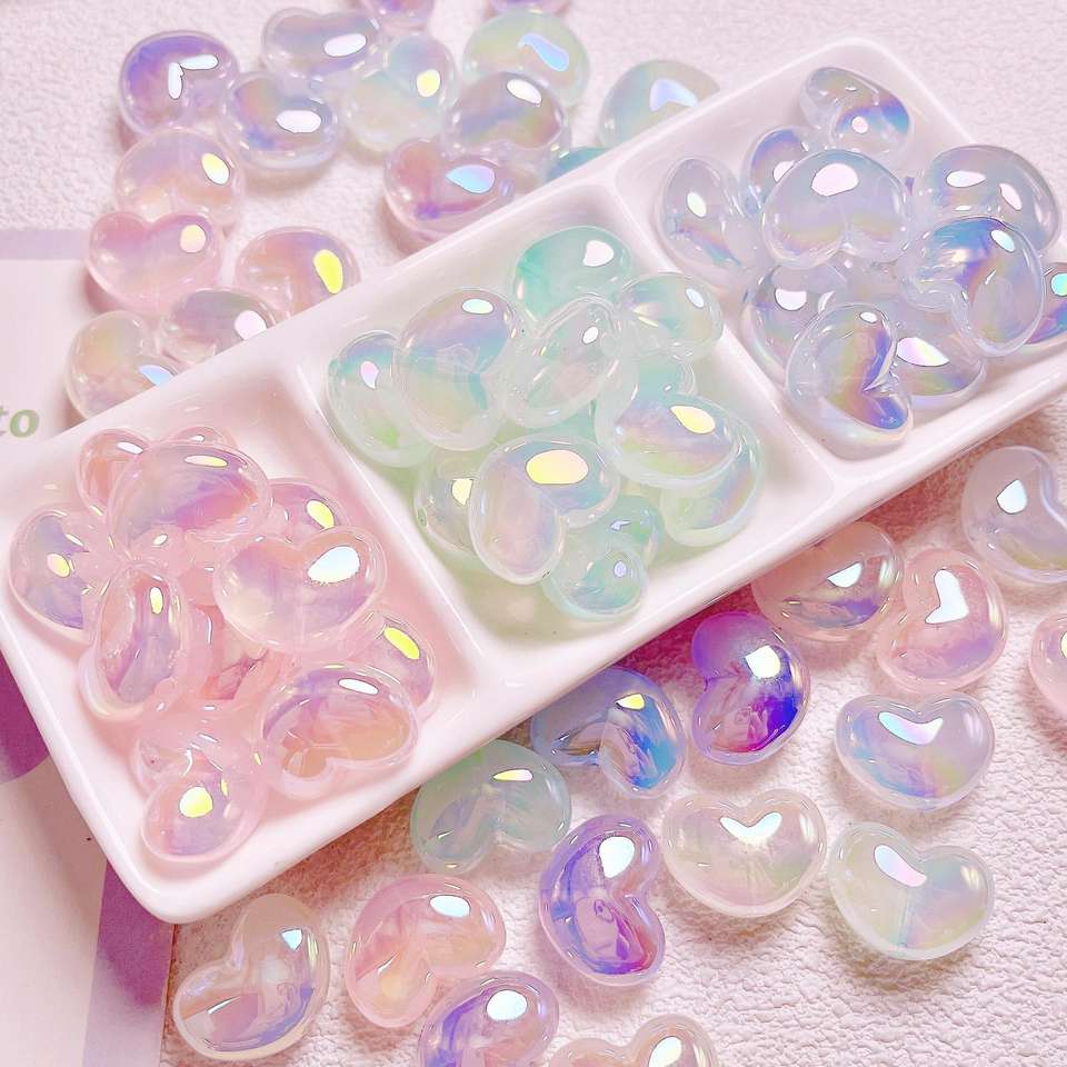 ลูกปัดหัวใจเจลลี่อะคริลิคพร้อมรูตรงสำหรับสายรัดโทรศัพท์แบบทำมือพวงกุญแจเครื่องประดับ