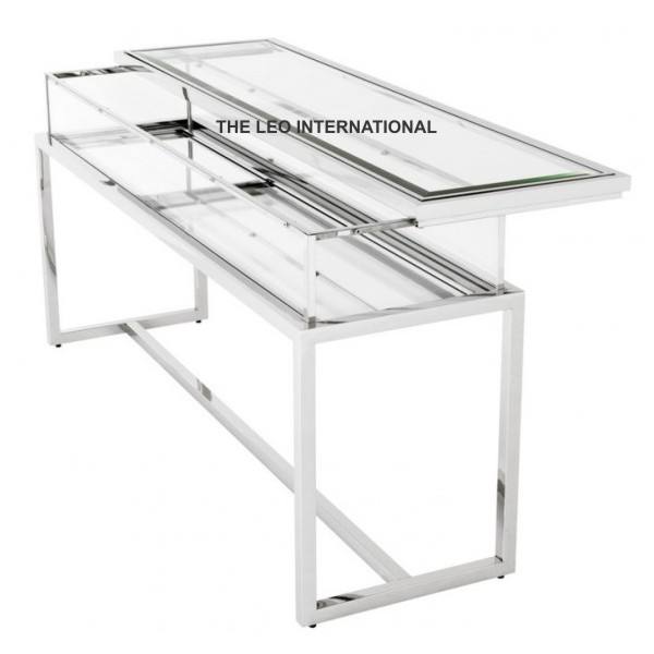 ขาอะคริลิค โครงเหล็กสแตนเลส สไตล์หรูหรา ตกแต่งบ้านอย่างมีระดับ โต๊ะคอนโซลท็อปกระจกทันสมัย