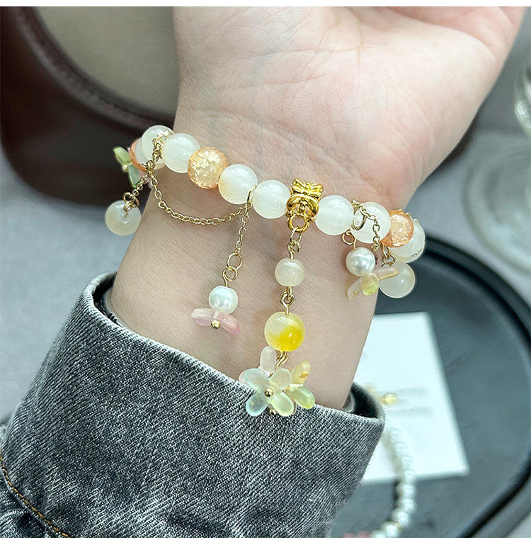 ลูกปัดอะคริลิคแบบหลวมลูกปัดดอกไม้สี่กลีบสีทอง9มม. งานประดิษฐ์ทำมือเครื่องประดับลูกปัดหลวม