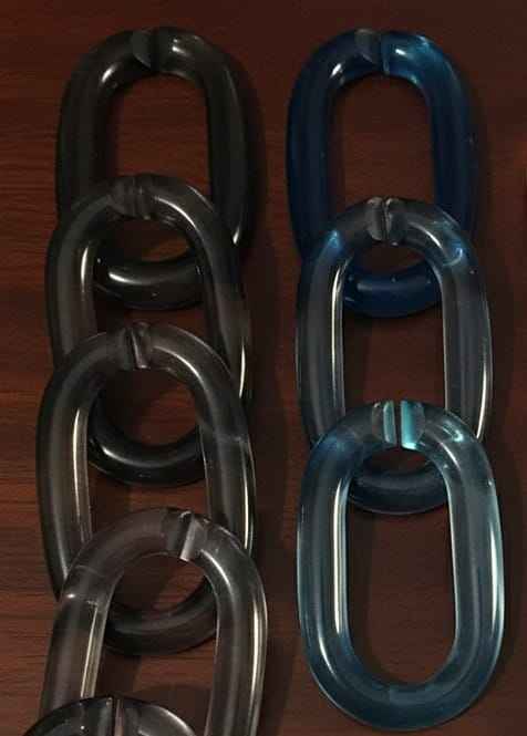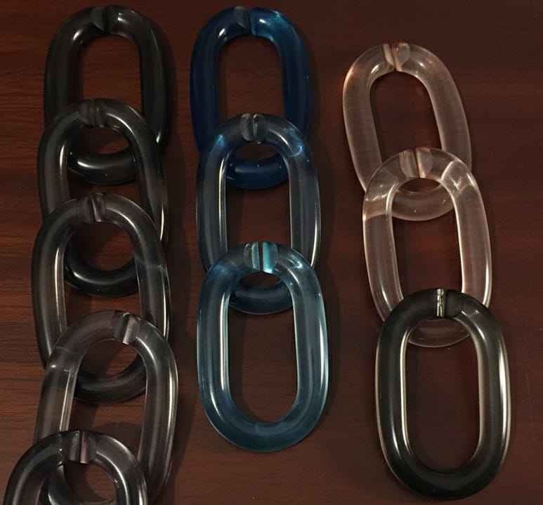 งานตกแต่งผนังอะคริลิคเรซิ่นรูปโซ่หลากสีสัน ของตกแต่งแขวนผนัง โซ่พลาสติกขนาดใหญ่ เชื่อมต่อกันเป็นรูปประติมากรรม ใช้กั้นห้อง