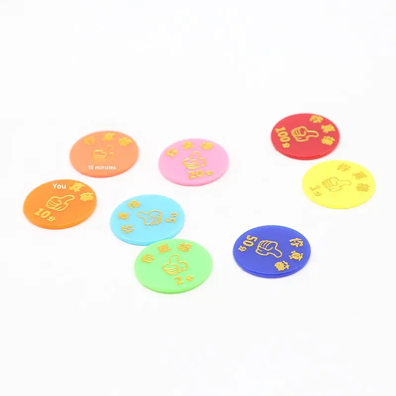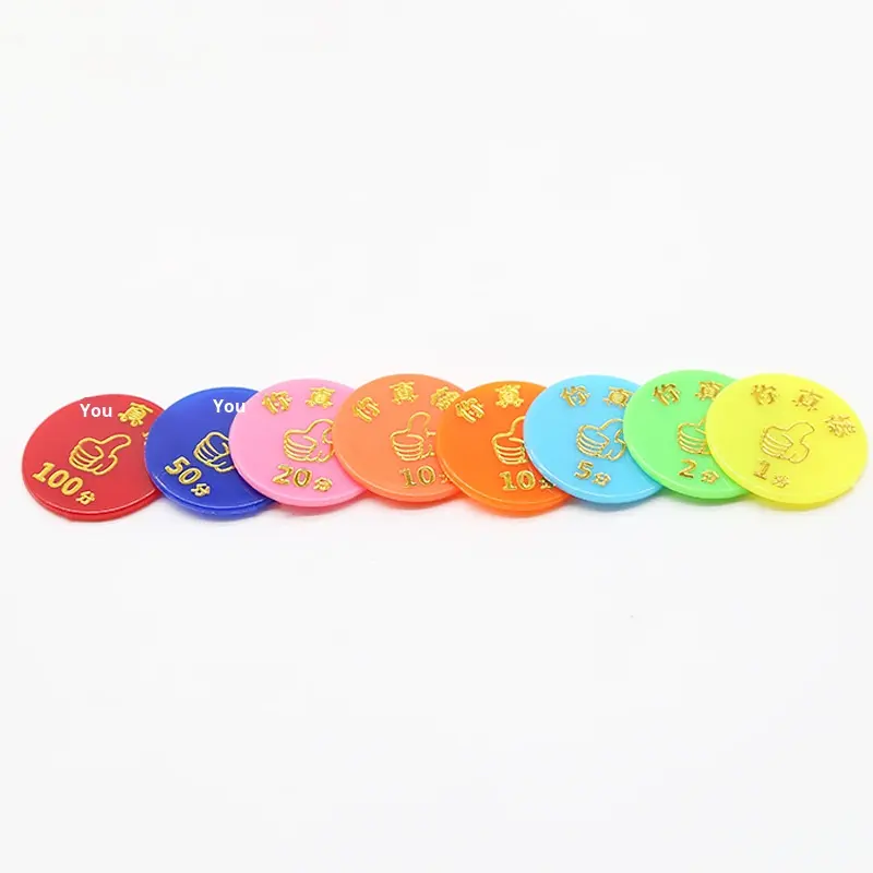 เหรียญอะคริลิกรูปทรงกลมพลาสติกพร้อมพิมพ์ลายสีตามสั่ง เหรียญสะสมคะแนนรางวัลสำหรับนักเรียน สำหรับเกมกระดานและถาดใส่ชิปโป๊กเกอร์