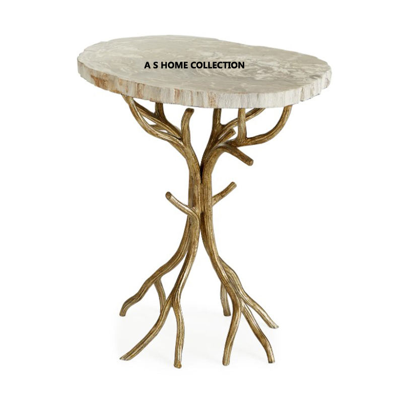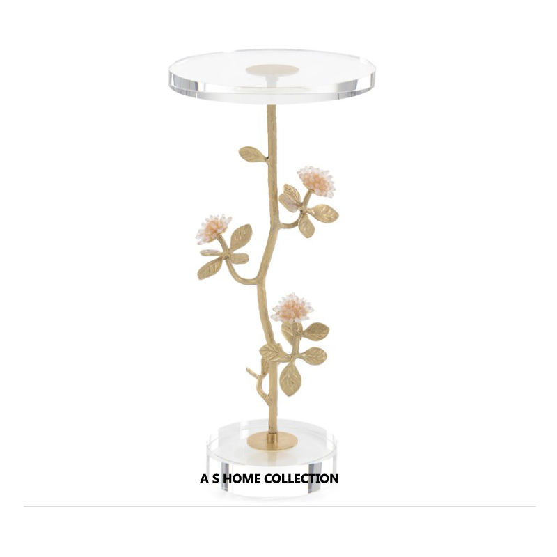 โต๊ะข้างตกแต่งหรูหรา ท็อปอะคริลิค โลหะ ดอกไม้ ดีไซน์ สําหรับห้องพัก