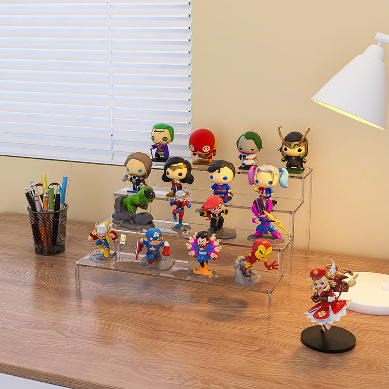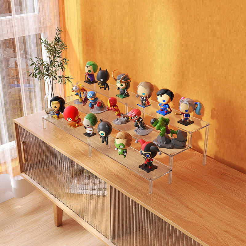 ชั้นวางอะคริลิคใสแบบหลายชั้นสำหรับฟิกเกอร์ Pop Mart Blind Box และตุ๊กตาเลโก้ ดีไซน์เรียบง่ายทันสมัย