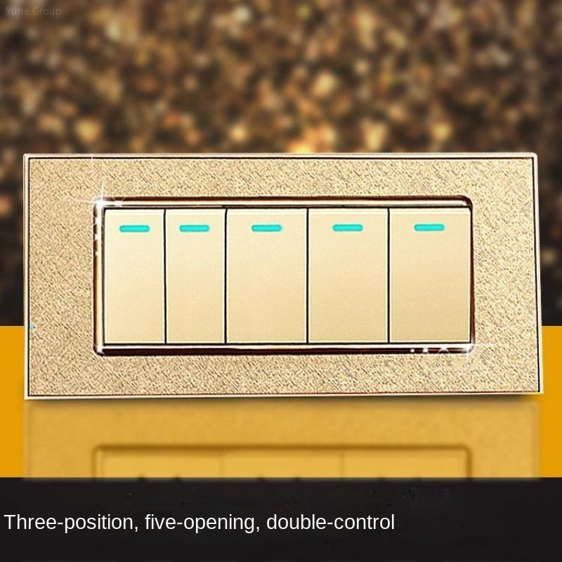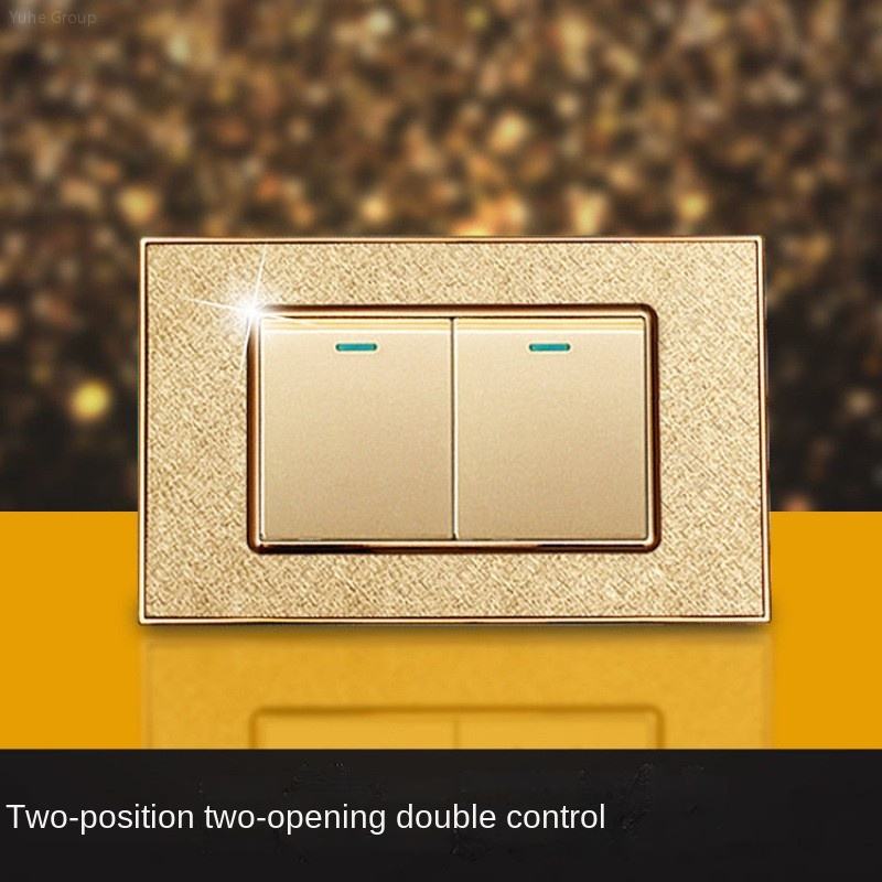อะคริลิคชุบทองมาตรฐานอเมริกัน 2 ชุด 2 ขั้ว ได้รับการรับรองมาตรฐาน CE CB แผงสัมผัส IP21 ดีไซน์ 1 ช่อง ปุ่มกดไฟฟ้าติดผนัง
