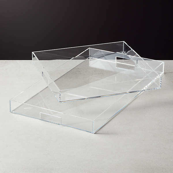 ถาดเสิร์ฟอะคริลิค ถาดเสิร์ฟอะคริลิคใสสูงพร้อมที่จับ ขายส่งเอง ถาดอะคริลิคใส
