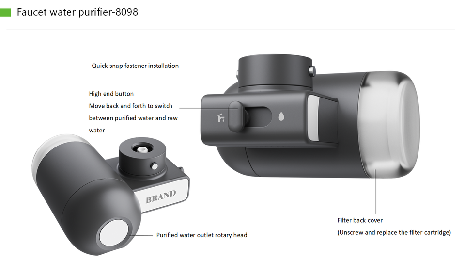 เครื่องกรองน้ำก๊อกน้ำอัจฉริยะแบบใช้มือทำจากพลาสติกคาร์บอนกัมมันต์ พร้อมก๊อกแบบดึงลงและปุ่มกด สำหรับใช้ในครัวเรือน