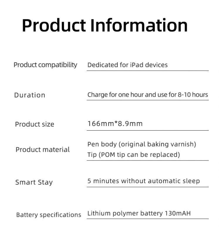 Magnetic Attraction, active sensing technology, Palm Rejection, replaceable nib, tilt angle sensing