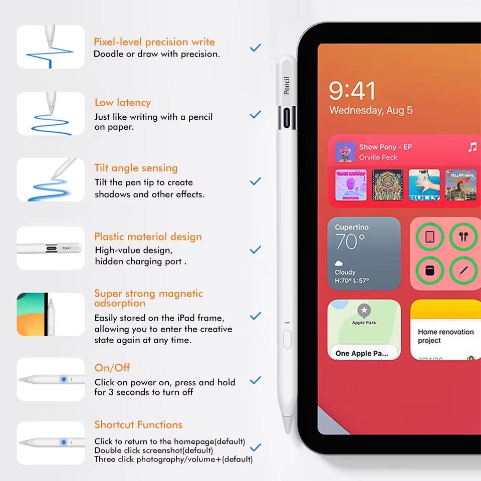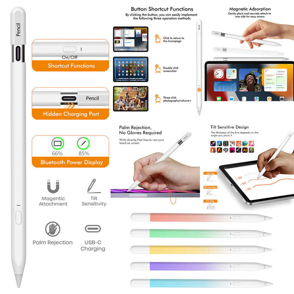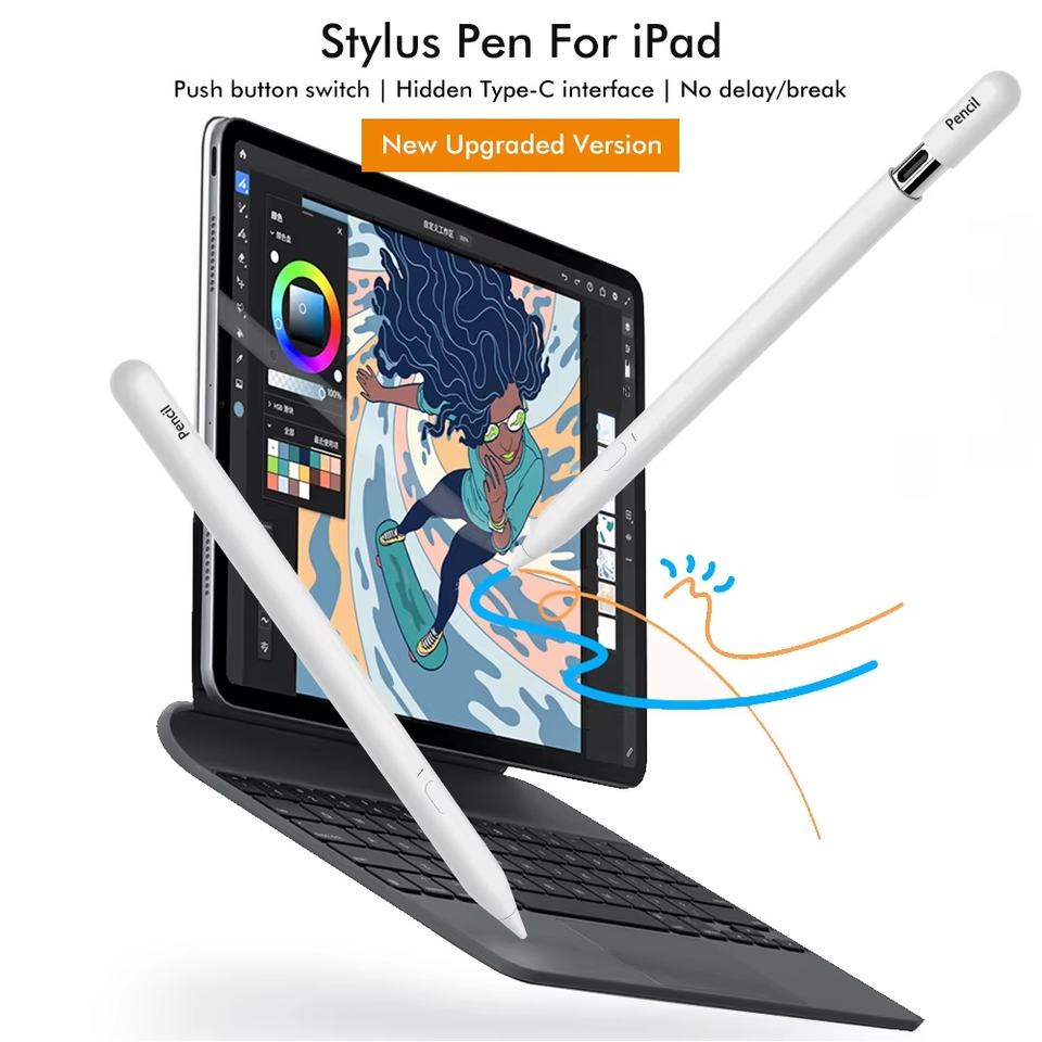 ปากกาสไตลัสแบบแอคทีฟ ชนิดสไลด์ซ่อน หัวต่อแบบ Type-C รองรับการป้องกันการสัมผัสจากฝ่ามือ สำหรับ Apple iPad รุ่นที่ 10 และ 11 (A16)/Air/Pro