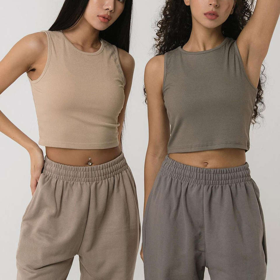 ชุดวอร์มสองชิ้นสำหรับผู้หญิงชุดวอร์มสองชิ้นเสื้อครอปท็อปและกางเกงวอร์มแนวแอคทีฟ