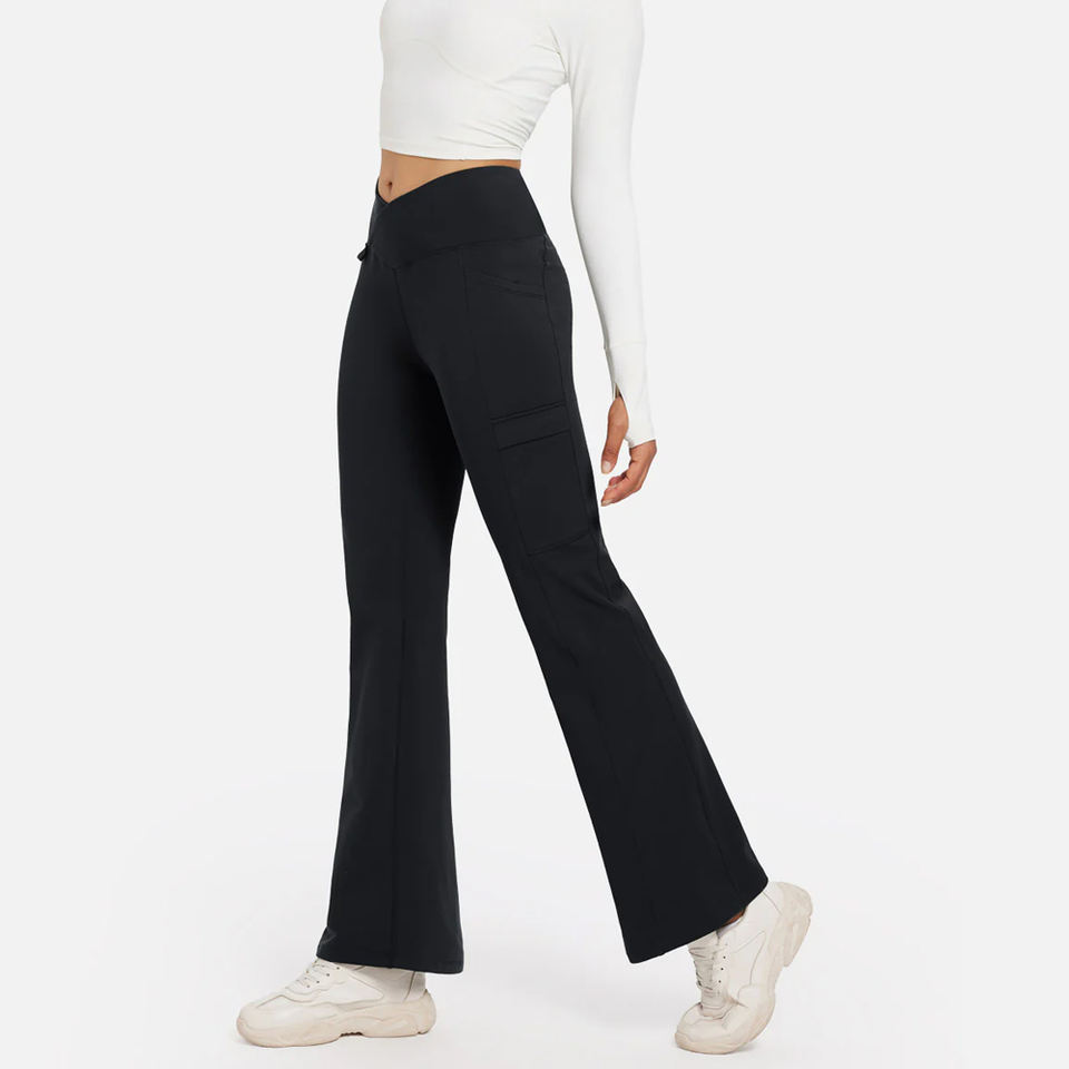ชุดออกกำลังกายสำหรับผู้หญิง กางเกงขายาวทรงบาน เอวยืดหยุ่น แห้งเร็ว คุณภาพสูง เหมาะสำหรับฤดูหนาว ยืดหยุ่นสูง