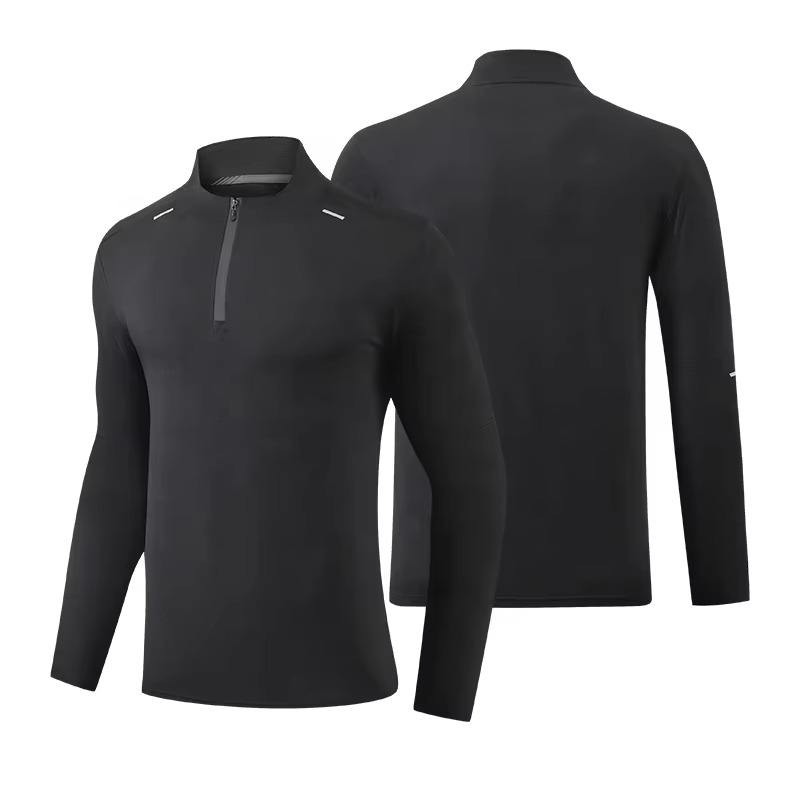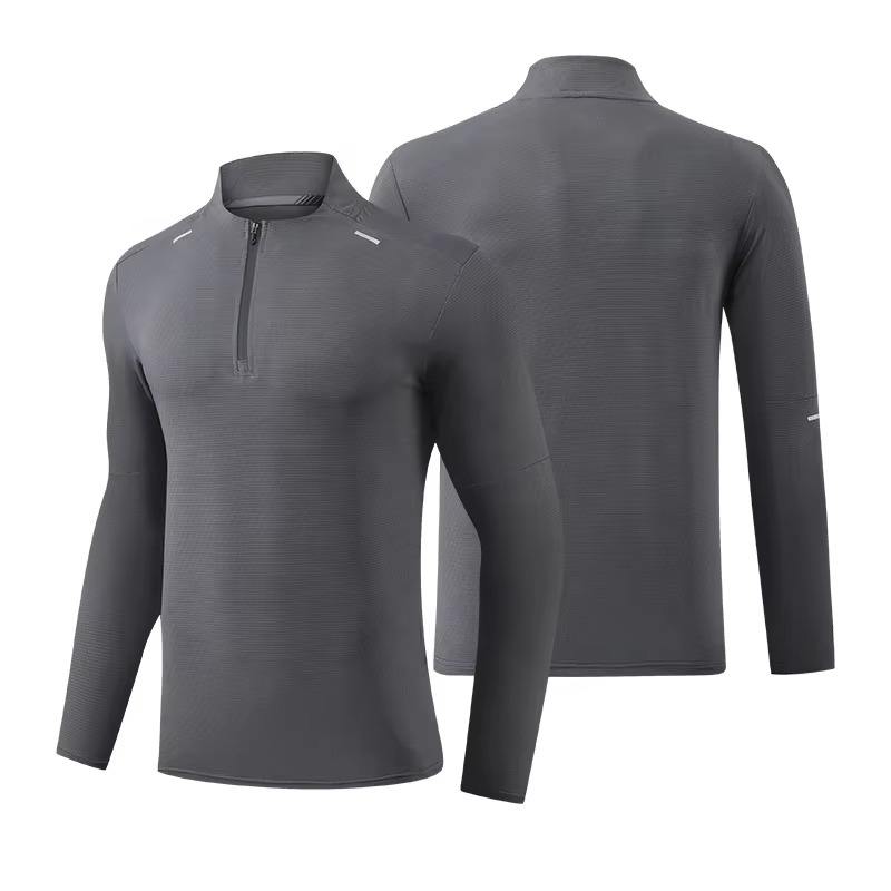เสื้อยืดแขนยาวมีซิปสำหรับผู้ชายเสื้อเชิ๊ตไม่มีซิปลายแถบสะท้อนแสง