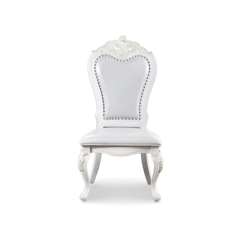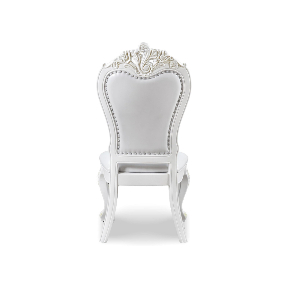 เก้าอี้ทานข้าว Adair ทำจากไม้มะฮอกกานีคุณภาพสูง โครงสีขาว พร้อมลวดลายแกะสลัก สำหรับใช้ภายในอาคาร
