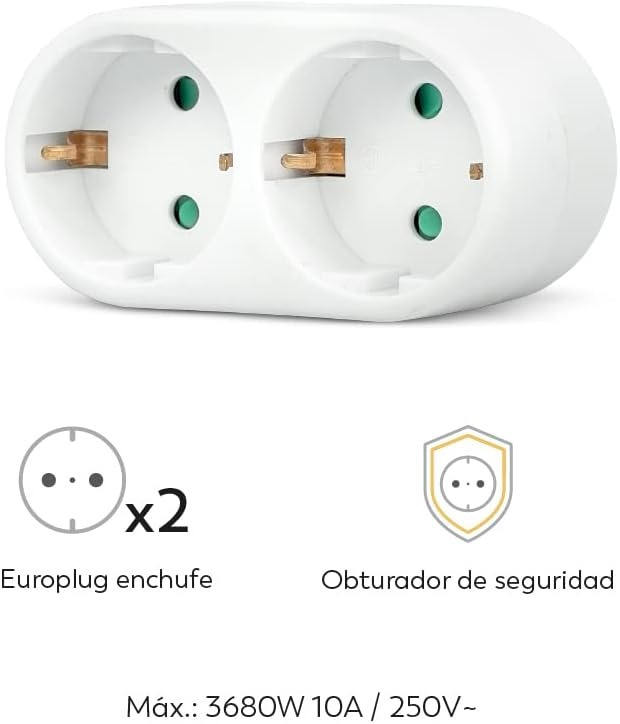 อะแดปเตอร์ 2 ช่องเสียบแบบ Schuko พร้อมปลั๊กพ่วง 2 ช่อง 2 x 16A สูงสุด 3680W สีขาว ยี่ห้อ Don Feliz