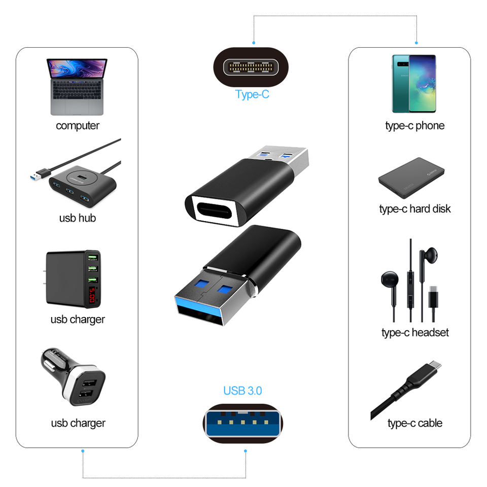 Adapter USB C with Aluminum Shell 5Gbps Super-Speed USB3.0 a Male to USB Type C Female Adapter Converter Wholesale