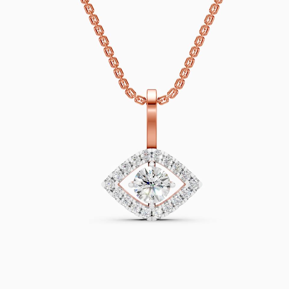 เพิ่มความโดดเด่นด้วยจี้เพชรประดับตาแบบวิบวับ 0.16 กะรัต ผลิตในห้องปฏิบัติการ ตัวเรือนทอง 9K สีเหลือง ขาว และโรสโกลด์
