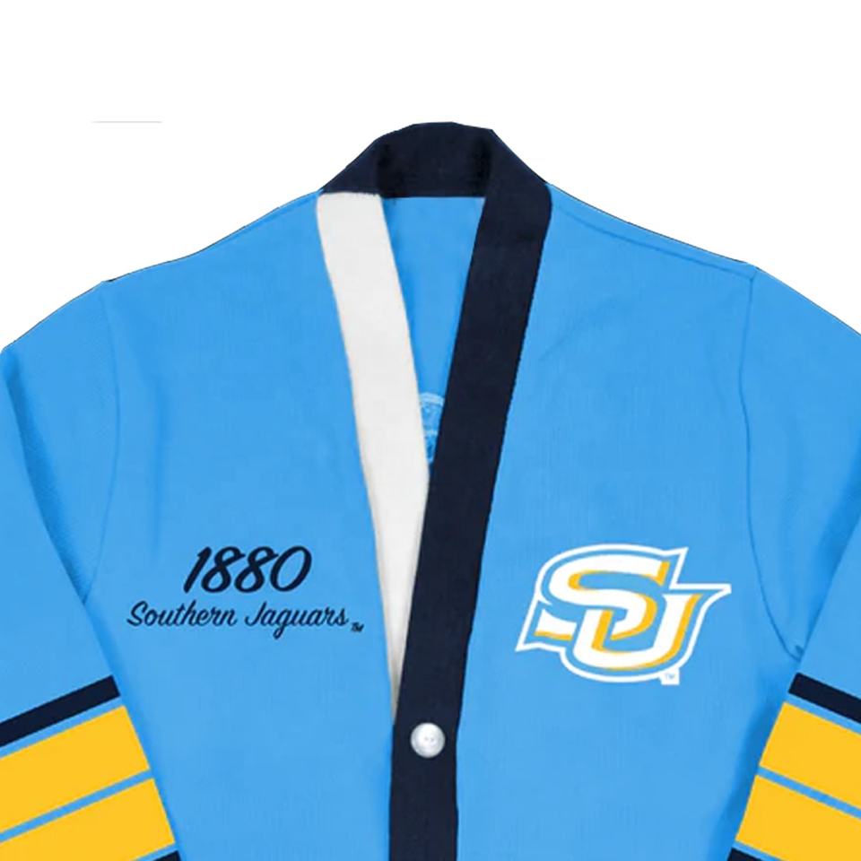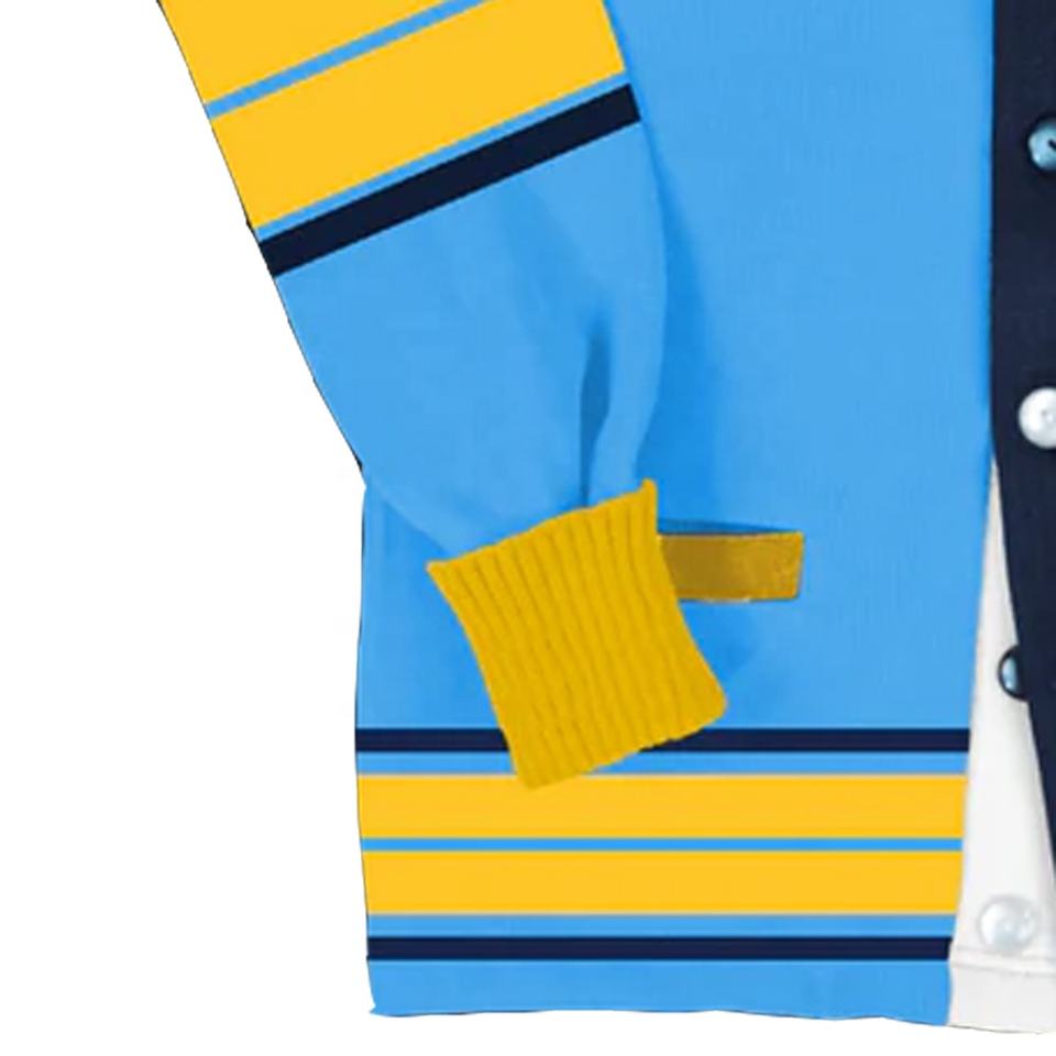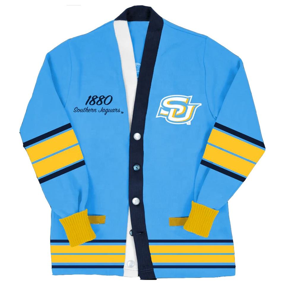 เสื้อสเวตเตอร์คาร์ดิแกนคอวีมีลายแบบปะติดบนท้องฟ้าสีทองสไตล์มหาวิทยาลัย