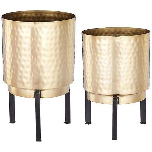 เพิ่มความซับซ้อนที่ทันสมัยให้กับพื้นที่ของคุณโดยใช้ที่ปลูกต้นไม้โลหะทำด้วยมือที่ออกแบบในสีทองเงินและสีดำเคลือบหรือเงา