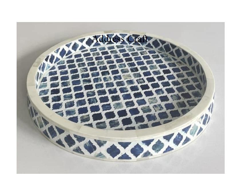 ถาดเสิร์ฟแบบฝังกระดูกทำด้วยมือจากไม้อินเดียผลงานชิ้นเอกของตกแต่งห้องครัวและบ้านสำหรับใช้เสิร์ฟอาหารชากาแฟ