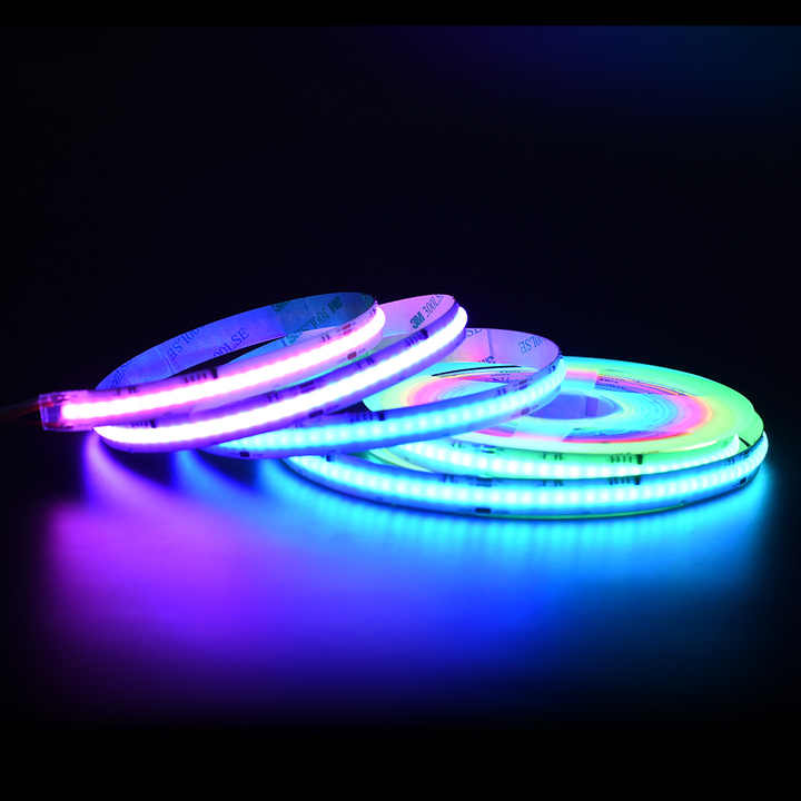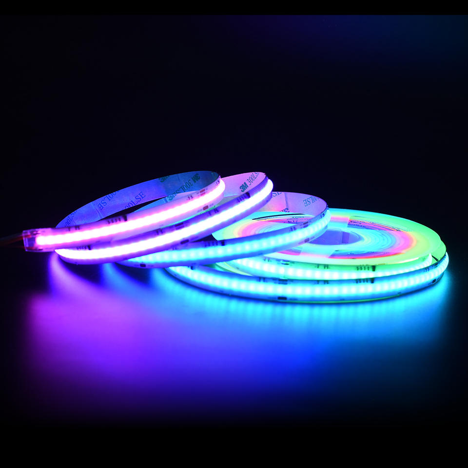 แถบไฟ LED RGBIC COB แบบ Addressable DC 12V 24V 630 LEDs/เมตร แบบไร้จุด ขนาด 12 มม. PCB แถบไฟ LED RGB