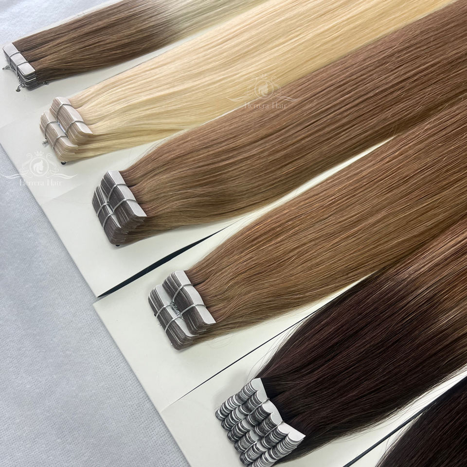Adhesive Tape Real Human Hair Extensiones Cabello Echt Haar Ombre Blonde 613 Russian Remy Raw Virgin Cuticle Tape Human Hair