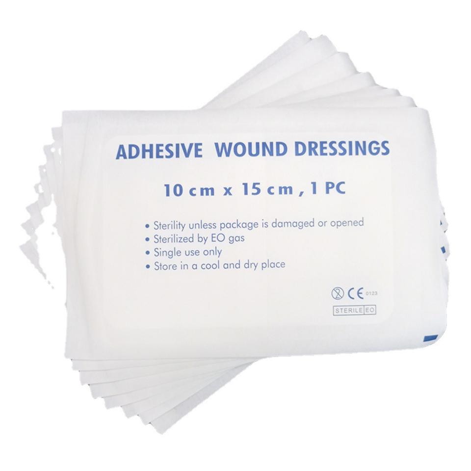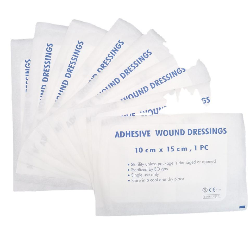 แผ่นปิดแผลแบบมีกาว ขนาด 10 ซม. x 15 ซม. ปลอดเชื้อด้วยก๊าซ EO ใช้ครั้งเดียว สำหรับปิดแผลทางการแพทย์