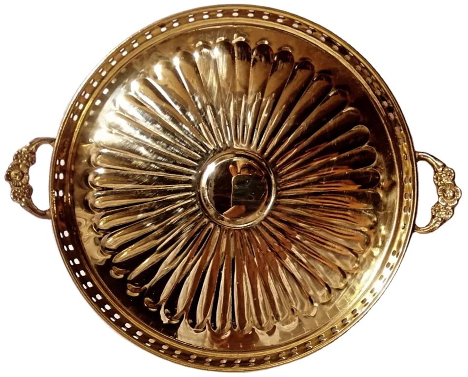 Adiba ถาดทองเหลืองทรงกลมลายดอกไม้ทำด้วยมือของตกแต่งบ้านถาดเสิร์ฟ10.5นิ้วเป็นมิตรกับสิ่งแวดล้อมสำหรับอาหารว่างอาหารเช้าฯลฯ