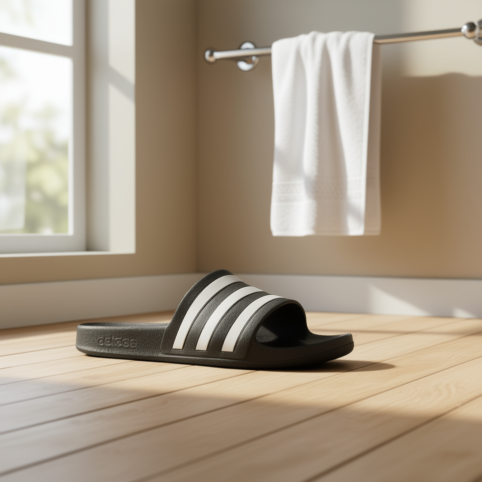 อาดิดาส อาดิเล็ตต์ คอมฟอร์ท สไลด์รองเท้าผู้ชายสีดำสีขาวน้ำหนักเบาระบายอากาศได้ดีคุณสมบัติป้องกันการลื่น