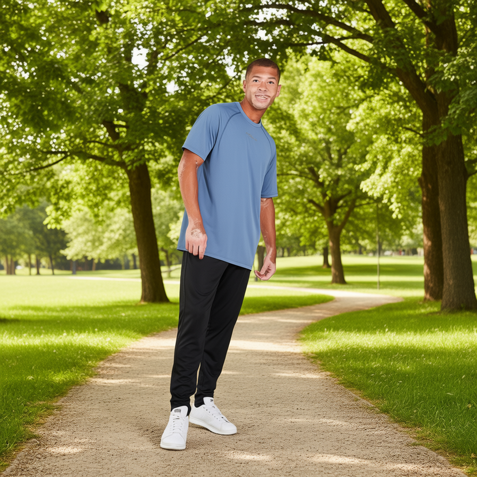 เสื้อยืดออกกำลังกายผู้ชาย Adidas สีฟ้าอ่อน แขนสั้น ทรงปกติ ผ้าคอตตอนเจอร์ซีย์ คอกลม สวมใส่สบายๆ