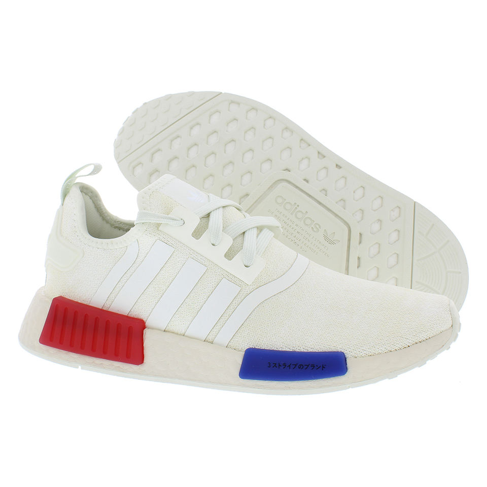 ADIDAS NMD R1รองเท้าเดินออกกำลังกายของผู้ชายสีขาว/สีแดงสง่า/กึ่งสีน้ำเงิน | 100% ของแท้