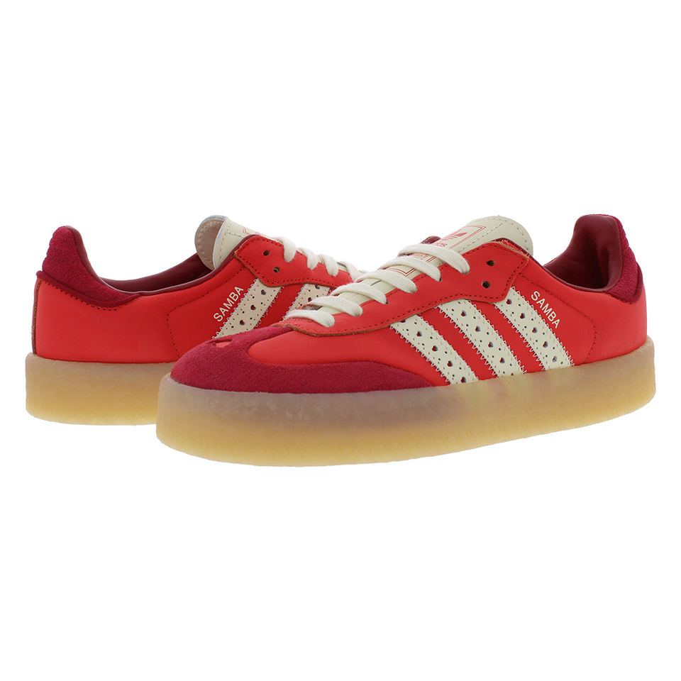 Adidas รองเท้า Sambae ของแท้สำหรับผู้หญิง, รองเท้าสีแดง/สีครีมพร้อมไฟ LED สไตล์เดินนุ่มบุนวมน้ำหนักเบา