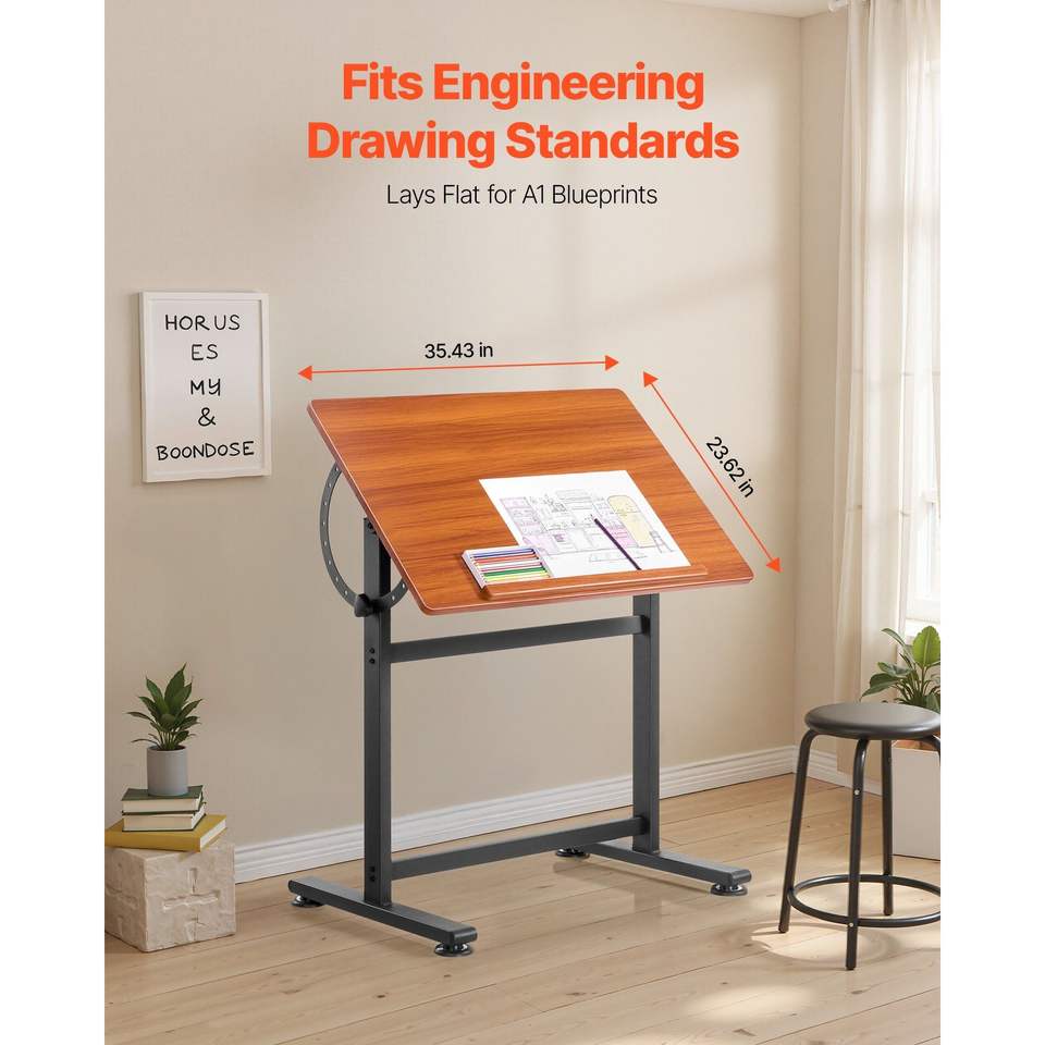 โต๊ะศิลปินแบบพกพาปรับเอียงได้ 0-90 องศา สีดำ โครงรูปตัว H พร้อมท็อปโต๊ะสีน้ำตาล อุปกรณ์เขียนแบบ-โต๊ะวาดเขียนปรับระดับได้