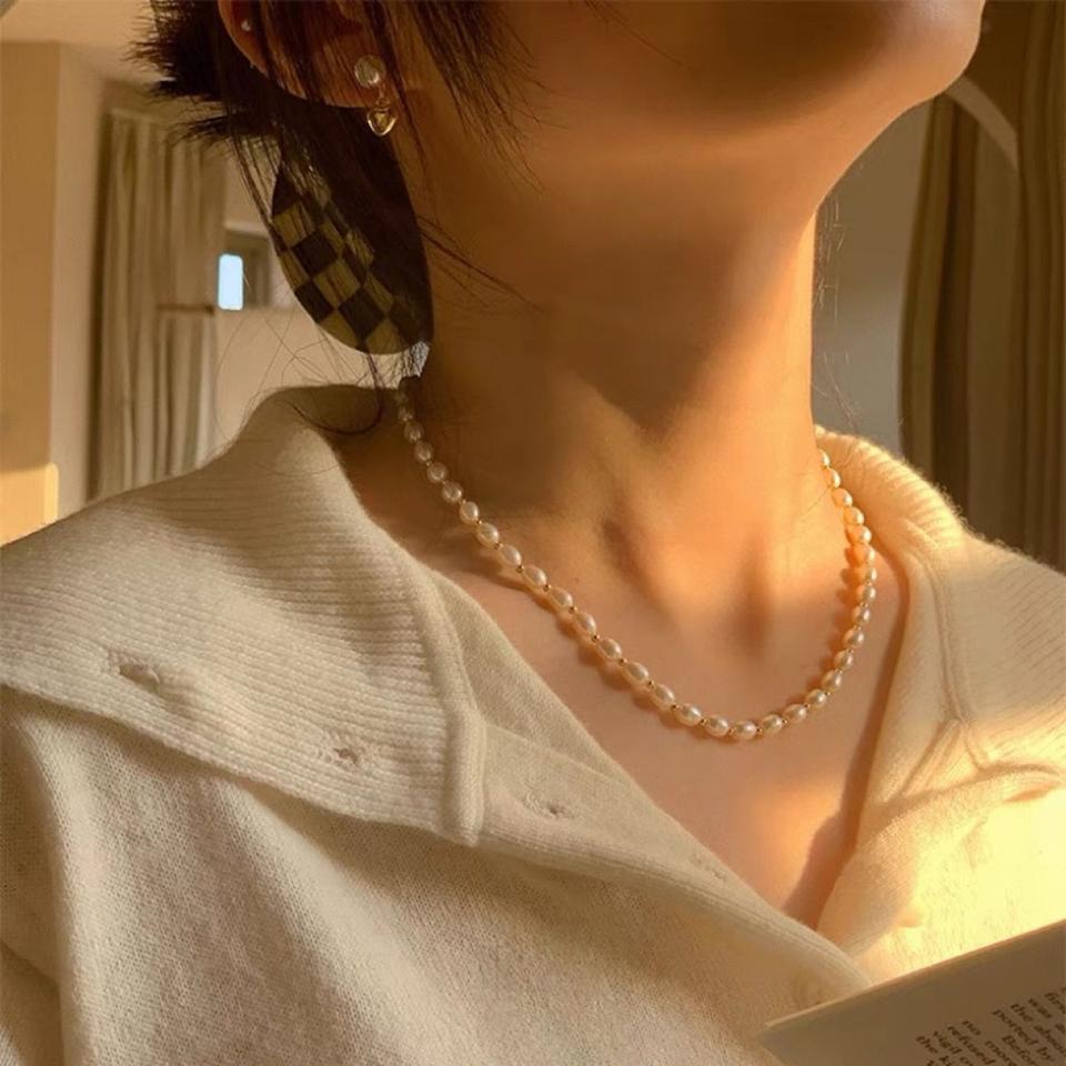 สร้อยคอลูกปัดทอง 14k ปรับได้ พร้อมไข่มุกน้ำจืดธรรมชาติ สไตล์เรโทรและอ่อนโยน สำหรับบล็อกเกอร์บนอินสตาแกรม
