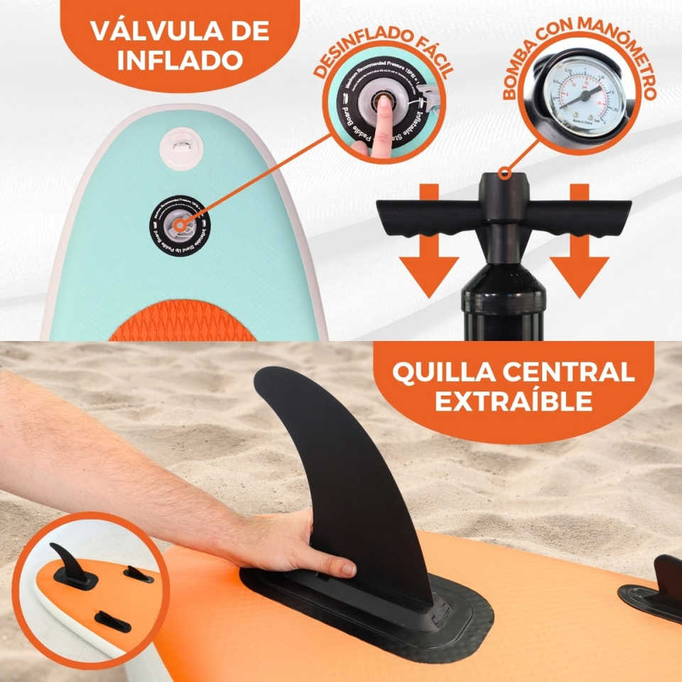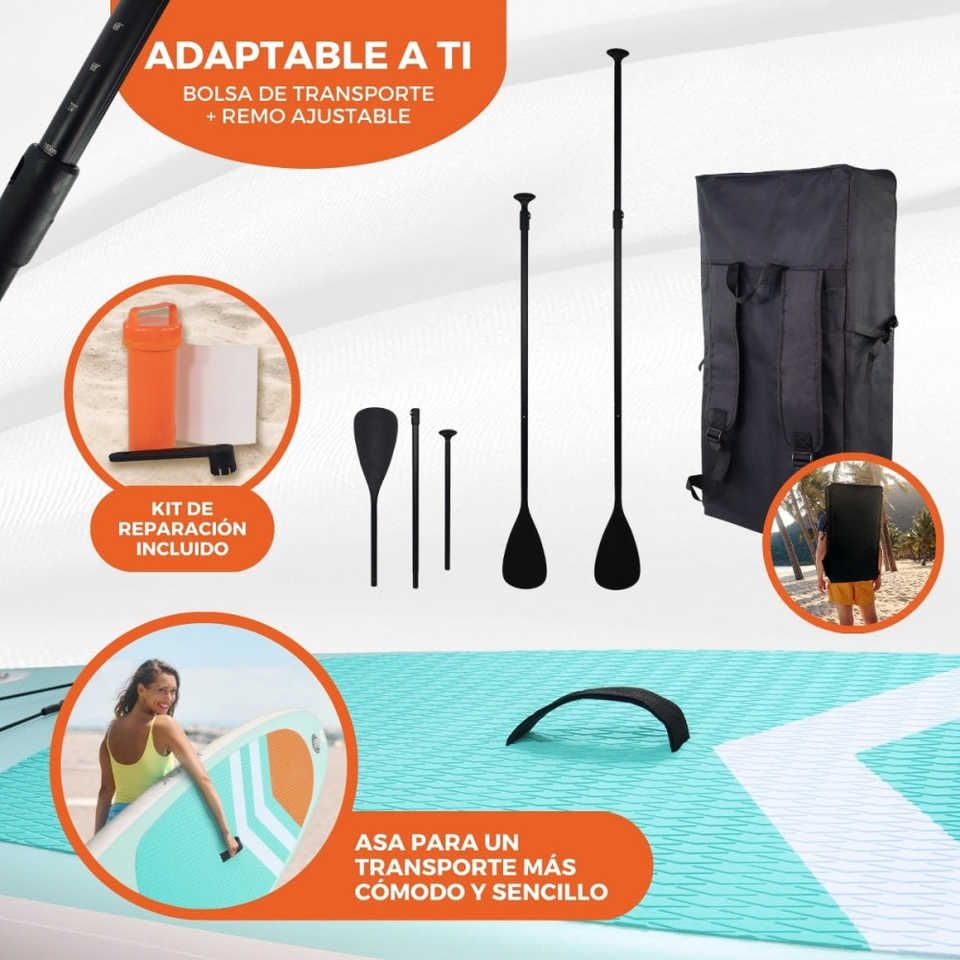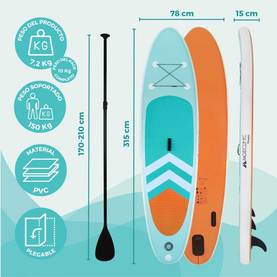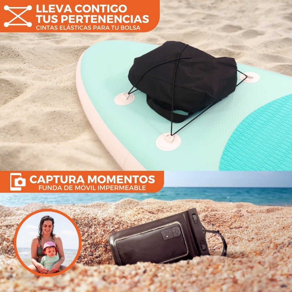 บอร์ดไม้พายเป่าลม PVC 150กก. ปรับได้315x78x15ซม. ยืนพร้อมสายจูงเพื่อความปลอดภัยกระเป๋าเป้สะพายหลัง