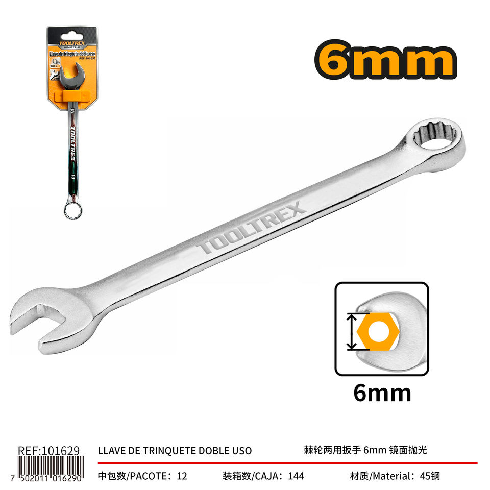 Tooltrex Combination Wrench 6mm Mirror Polished Double End For Industrial Use