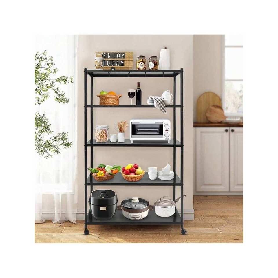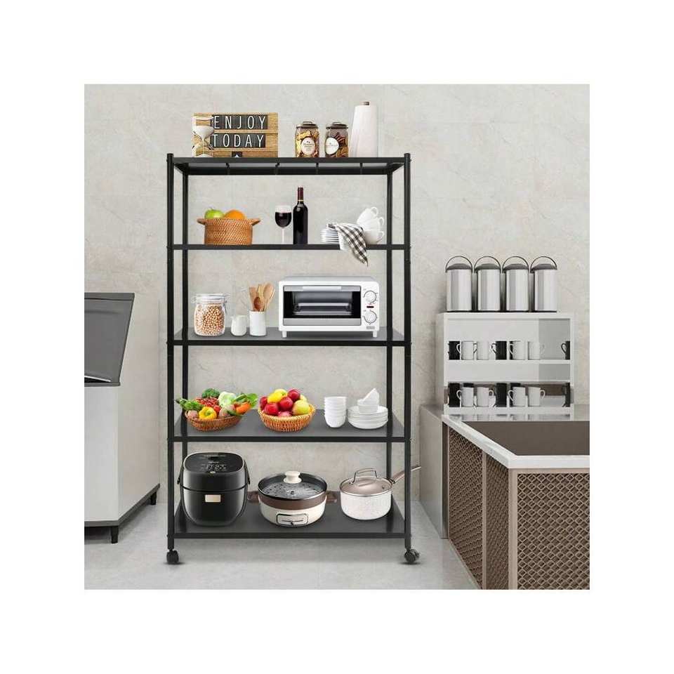 Adjustable 5 Tier Kitchen Storage Rack with Wheels Home Organization Floor Standing Rack