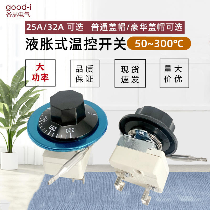 สวิตช์ควบคุมอุณหภูมิแบบกลไก ปรับได้ 50-300 องศาเซลเซียส สำหรับหม้อทอดไฟฟ้า เครื่องทำน้ำอุ่น 25A 32A แบบขยายตัวของของเหลว