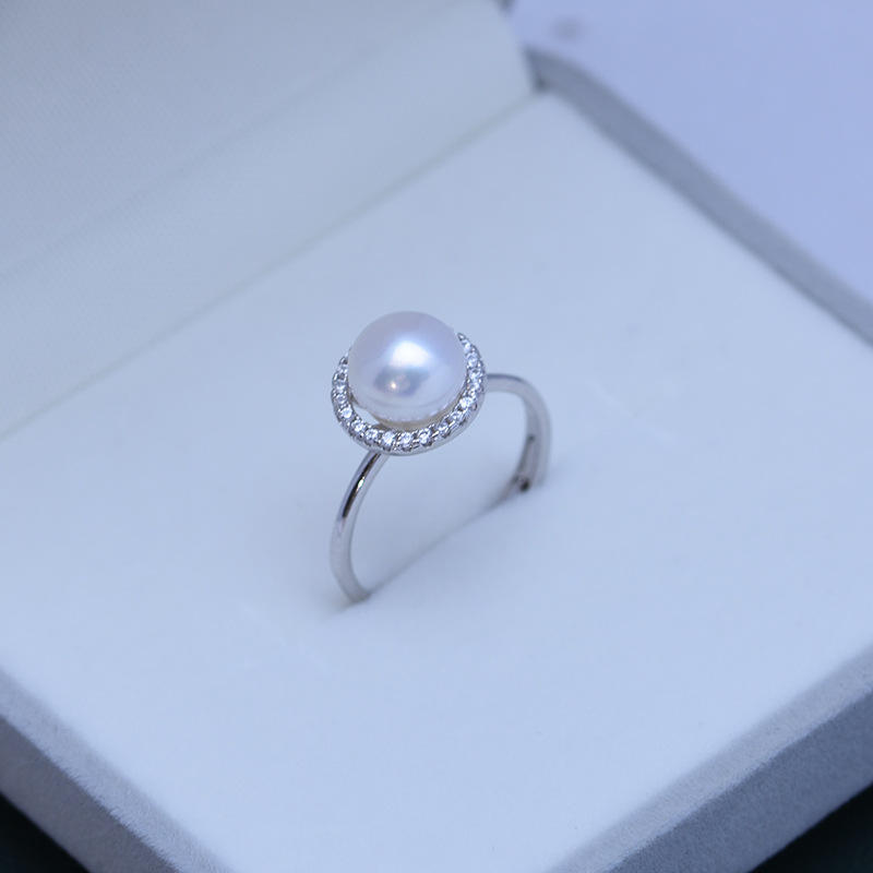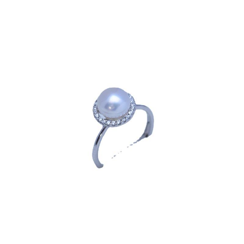 แหวนเงินแท้ 925 ประดับมุกน้ำจืดทรงเกือบกลม ขนาด 7-8 มม. ปรับขนาดได้ คุณภาพเยี่ยม แสงเงางาม เหมาะสำหรับไลฟ์สดและการค้าข้ามพรมแดน